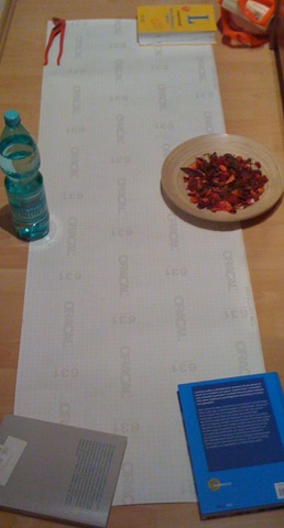 Als erstes haben wir das Tattoo ausgerollt und mit Dingen beschwert, damit es sich nicht von alleine wieder aufrollt.