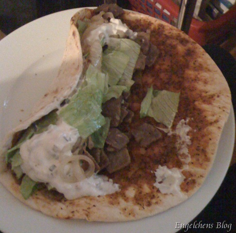 Meine war leider so voll belegt, dass ich sie nichtmehr richtig zusammen rollen konnte. Es sah dann hinterher aus wie ne Mischung aus Wrap und Dönertasche *lach*