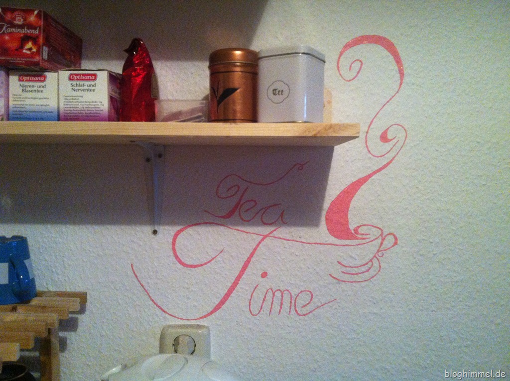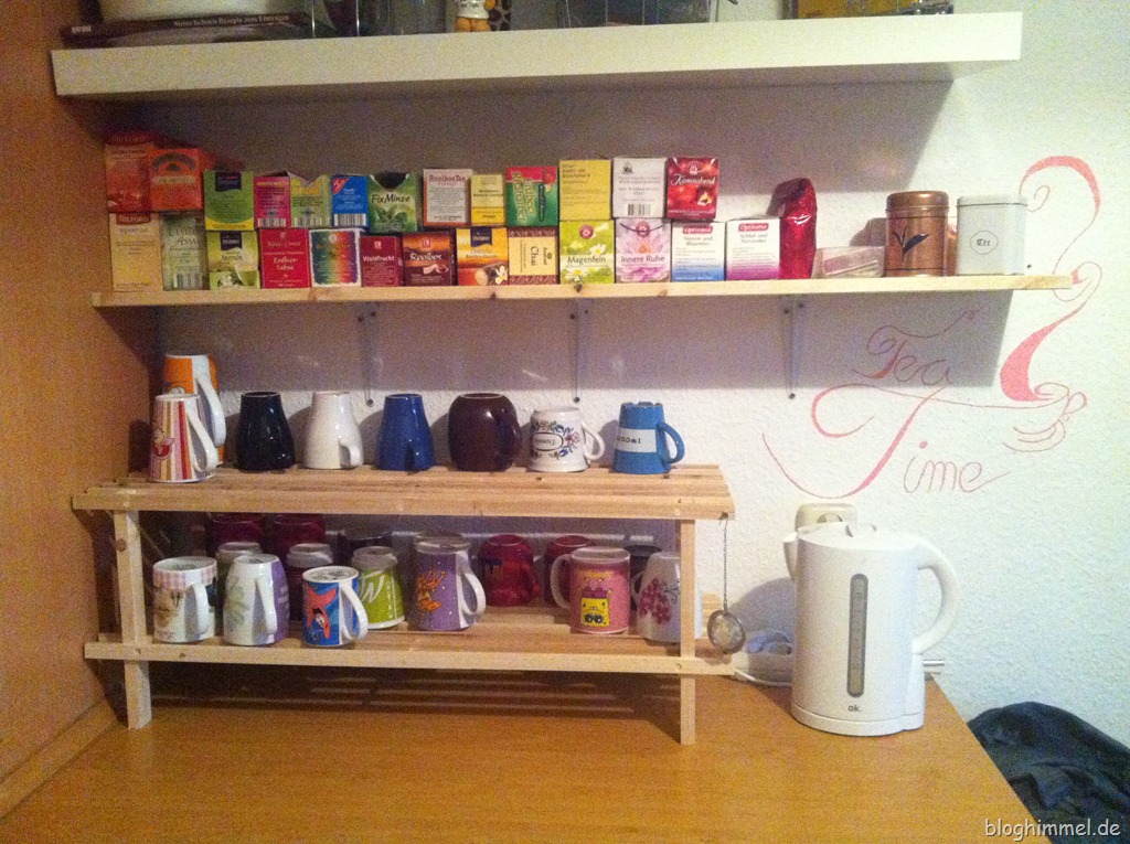 Zu Hause angekommen habe ich mich dann direkt ans Werk gemacht und das Regal angebracht, darunter steht jetzt das Schuh- ääääh Becherregal bestückt mit meinen Bechern.